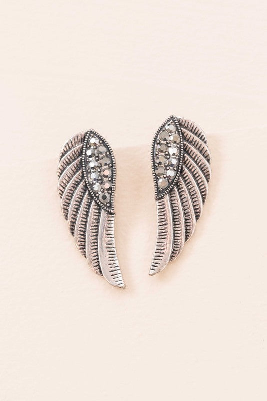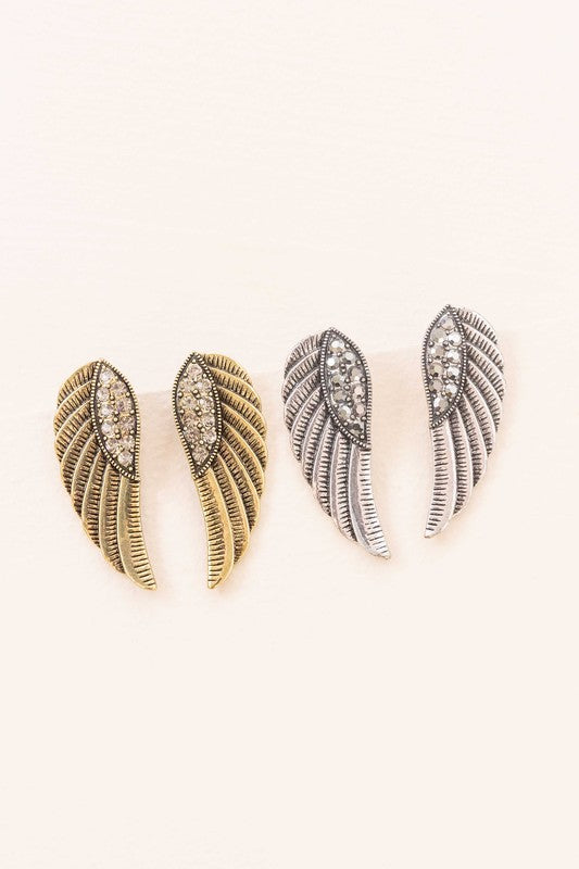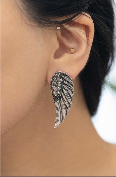 Dress with a little edge in these gold or silver falcon statement earrings. Detailed engraving with studded stones.