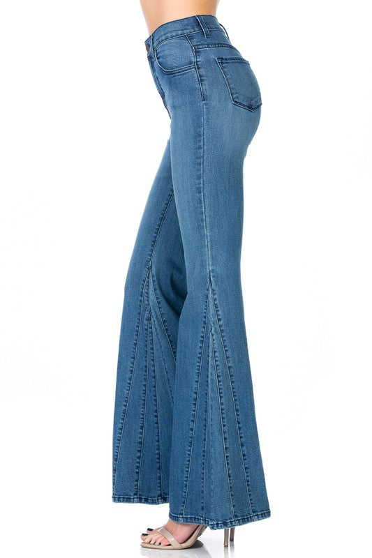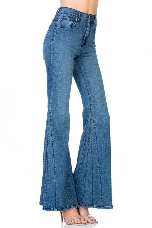 High Waist, Five Pocket Design, Faded Look Super Flared Mermaid Wide Leg Finish with Exposed Seam jeans make it perfect to pair with your favorite jeans, shirt jacket, Shacket, or Sexy Top for the Spring 7 Summer season.