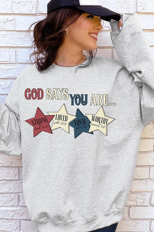 God Says You Are Strong Loved Oversized Graphic Fleece Sweatshirts.