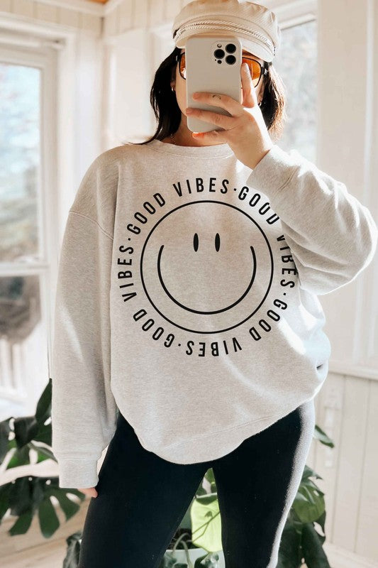 GOOD VIBES HAPPY SMILES OVERSIZED SWEATSHIRT