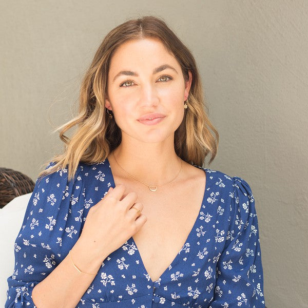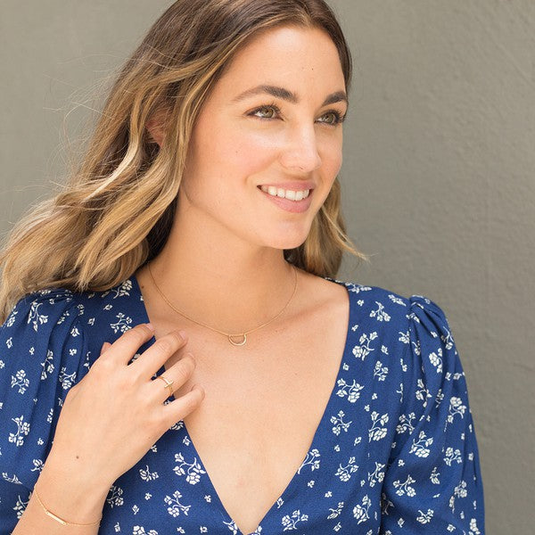 A tiny charm reminiscent of a crescent moon hanging upon a thin chain. The adjustable length makes layering easy - wear it full length or as a choker and layered alongside your favorite necklaces.
