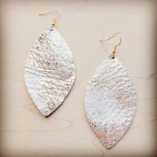 Elevate your style with these stunning Leather Oval Earrings. Made from genuine leather, these earrings are the perfect accessory for any boho or western look. The oval shape adds a unique touch to the design, while the heavy metal white color adds a bold and edgy element. With a length of 3 inches, these earrings are the perfect statement piece to complete any outfit. The high-quality leather ensures durability and long-lasting wear. Add these Leather Oval Earrings to your collection and make a statement wherever you go.
