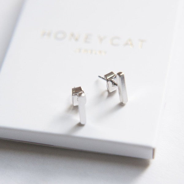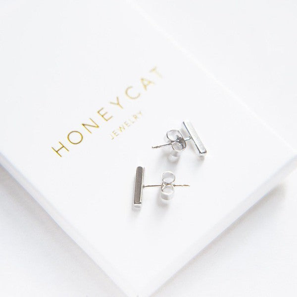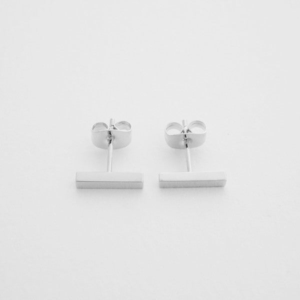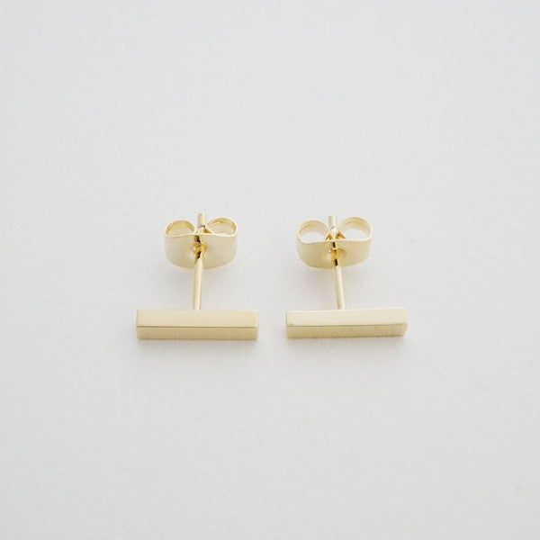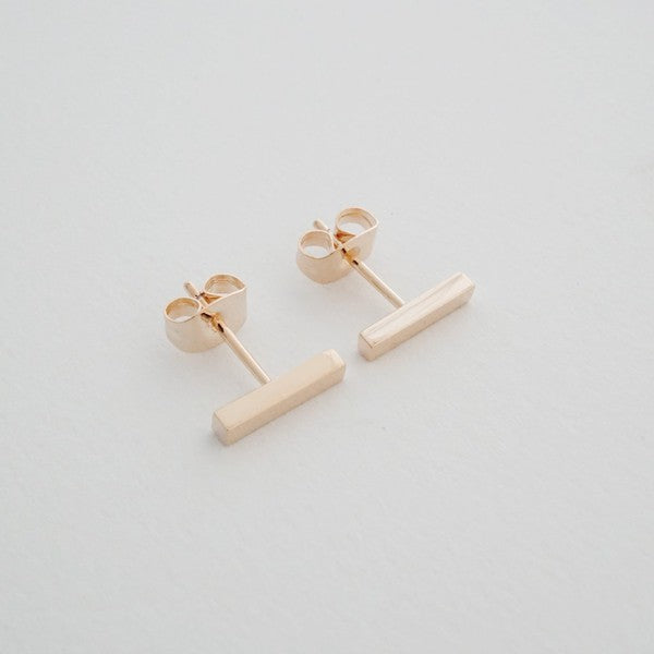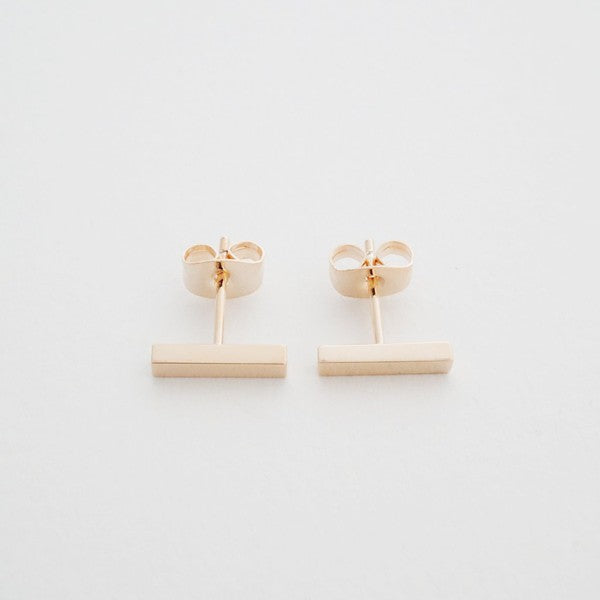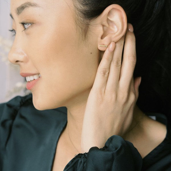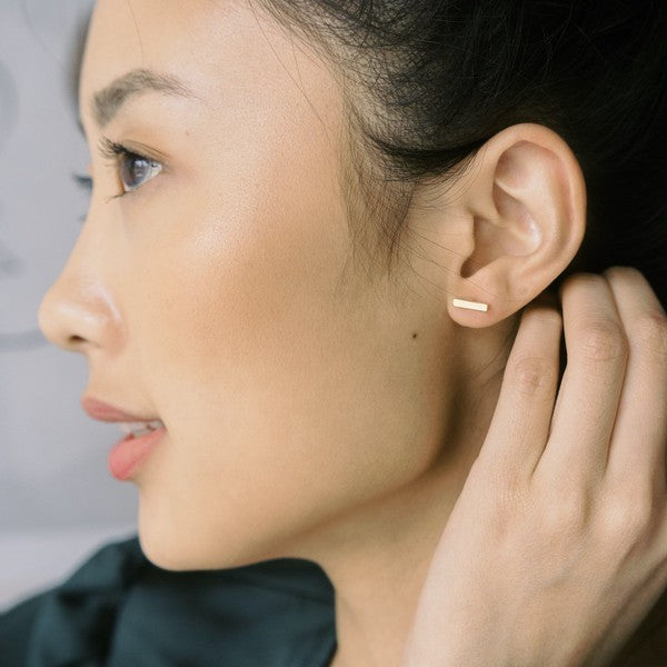 Minimalist, center stud back bar earrings. Straight and simple. 1.5 x 10 mm. Our materials make for an amazing, high quality, seamless, jewelry piece with longevity. Earrings are plated with 18k gold, 18k rose gold, or rhodium and finished with a protective coating. A little secret we'll keep between us: it looks way more than it costs.