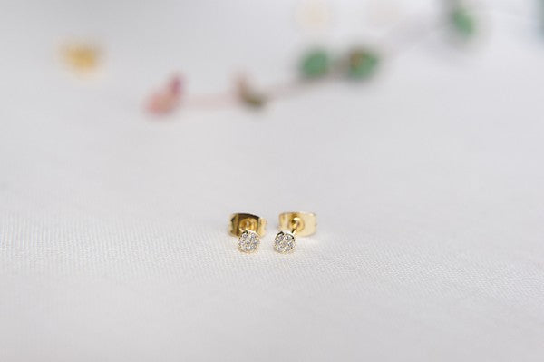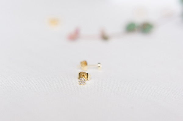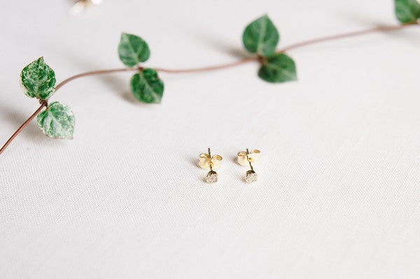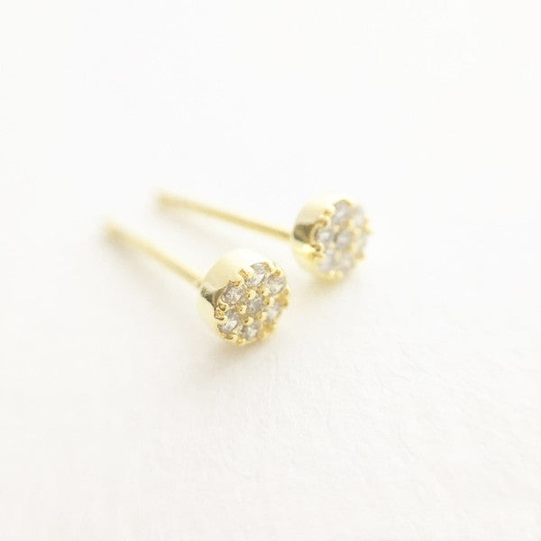 Circle stud earrings embedded with tiny crystals. These are a micro pave version of our Mini Circle Stud Earrings. 4 mm x 4mm. AAA-rated cubic zirconia crystals. Our materials make for an amazing, high quality, seamless, jewelry piece with longevity. Earrings are plated with 18k gold, 18k rose gold, or rhodium and finished with a protective coating. A little secret we'll keep between us: it looks way more than it costs.