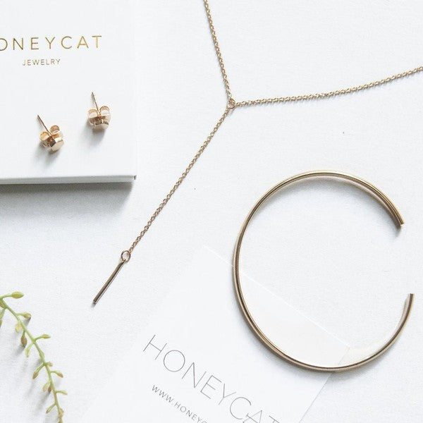 Our materials make for an amazing, high quality, seamless, jewelry piece with longevity. Items are brass plated with 24k gold, 18k rose gold, or rhodium and finished with a protective coating. A little secret we'll keep between us: it looks way more than it costs.