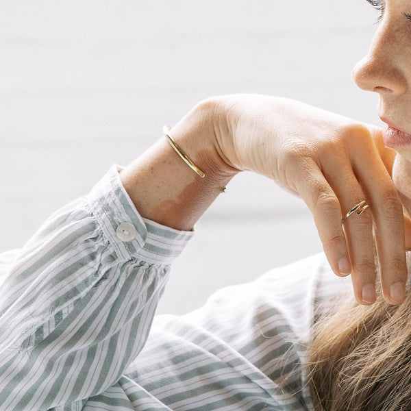 Classic smooth and rounded cuff-bangle-bracelet. A gorgeous standout piece worn alone or stacked.